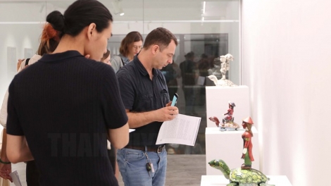 (VOV5) - Triển lãm gồm tổ hợp các tác phẩm: Tranh vẽ, hoạt hình, tượng, trang phục, mặt nạ và các bản nhạc được sắp đặt theo trình tự.