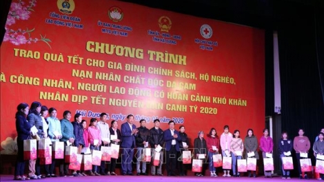 (VOV5) - Phó Thủ tướng Chính phủ, Bộ trưởng Ngoại giao Phạm Bình Minh dự chương trình trao 350 suất quà Tết tặng gia đình chính sách, hộ nghèo, nạn nhân chất độc da cam.