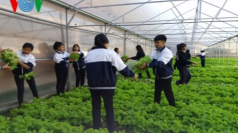 (VOV5) - Khu vườn nhà kính được nhà trường đầu tư hơn 150 triệu đồng là nơi giáo viên và học sinh cùng thực hành trồng rau, hoa công nghệ cao.
