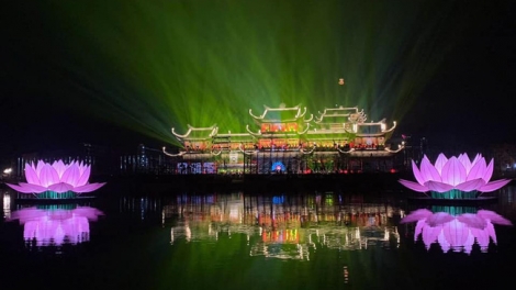 (VOV5) - Tại khu vực Điện Pháp Chủ, chùa Tam Chúc, diễn ra chương trình bắn pháo hoa tầm thấp trong thời gian 15 phút.