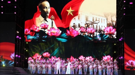 (VOV5) - Chương trình nghệ thuật có sự tham gia biểu diễn của gần 300 nghệ sĩ, diễn viên đến từ Thành phố Hồ Chí Minh và tỉnh Nghệ An.