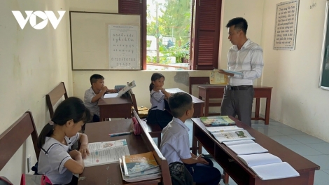 (VOV5) - Hiện nay, ở quần đảo Trường Sa các em học sinh chỉ có thể theo học đến hết lớp 5, lên cấp 2 các em lại phải xa gia đình vào bờ để học tiếp.