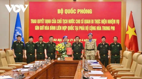 Trao Quyết định của Chủ tịch nước cho sĩ quan đi gìn giữ hòa bình tại Trung Phi
