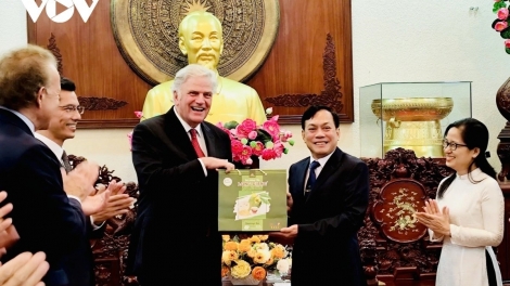 (VOV5) - Chương trình kết hợp trực tiếp và trực tuyến với sự tham dự của gần 10.000 người là chức sắc, chức việc, tín đồ, khách mời của 13 tỉnh/thành đồng bằng sông Cửu Long.