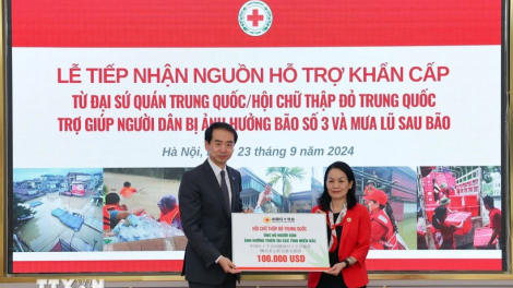 Tiếp nhận 100.000 USD từ Đại sứ quán Trung Quốc ủng hộ người dân bị ảnh hưởng cơn bão Yagi