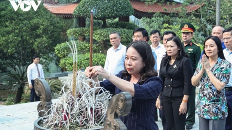 Quyền Chủ tịch nước Võ Thị Ánh Xuân dâng hương tưởng niệm Chủ tịch Hồ Chí Minh tại ATK Định Hóa