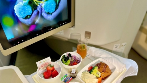 (VOV5) - Hành khách chọn bay Vietnam Airlines được phục vụ món ăn, thức uống từ dâu tây gồm: dâu tây nguyên quả; Trà dâu tây; Bánh mousse dâu tây.