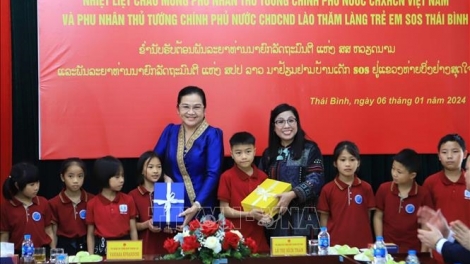 Phu nhân Thủ tướng Lào và Việt Nam thăm, tặng quà Làng trẻ em SOS Thái Bình