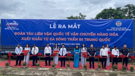 Ra mắt đoàn tàu liên vận quốc tế vận chuyển hàng hóa từ ga Sóng Thần đi Trung Quốc