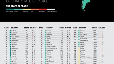 (VOV5) - GPI tính toán chỉ số hòa bình toàn cầu theo ba chủ đề lớn: mức độ an toàn và an ninh trong xã hội, mức độ xung đột trong nước và quốc tế, và mức độ quân sự hóa.