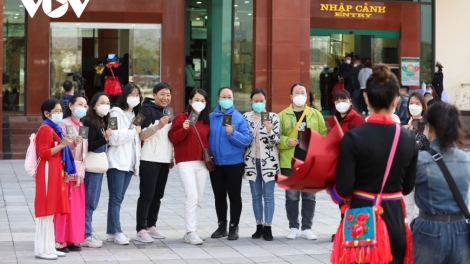 (VOV5) - Tại cửa khẩu quốc tế Hữu Nghị, 124 du khách Trung Quốc nhập cảnh Việt Nam để bắt đầu hành trình 3 ngày 2 đêm trải nghiệm các điểm du lịch tại Việt Nam.
