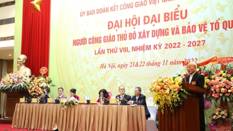 (VOV5) - Sáng 22/11, tại Hà Nội đã diễn ra Đại hội đại biểu “Người công giáo Thủ đô xây dựng và bảo vệ Tổ quốc” lần thứ 8, nhiệm kỳ 2022-2027 với sự tham gia của 378 đại biểu chính thức.