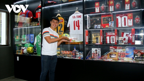 (VOV5) - Thư viện bóng đá 2109 nằm ở Quận 10, thành phố Hồ Chí Minh, rộng khoảng 400m2. Các hiện vật tại đây gồm: Áo đấu, giày, sách, tượng, chân dung, các vật phẩm lưu niệm…