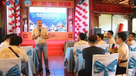 (VOV5) - Cuộc thi quy tụ 35 thí sinh từ 13 tỉnh thành trong cả nước. Các thí sinh trải qua các nội dung thi, gồm: đánh giá chất lượng cà phê nhân; thực hành rang; thực hành pha.