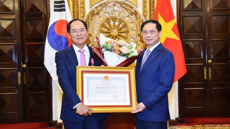 (VOV5) - Huân chương Hữu nghị là phần thưởng cao quý, ghi nhận của Nhà nước và nhân dân Việt Nam đối với sự đóng góp vào việc phát triển quan hệ giữa hai nước Việt Nam-Hàn Quốc.