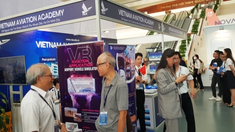 (VOV5) - Triển lãm trưng bày, giới thiệu và tìm hiểu các dịch vụ công nghệ, giáo dục và dịch vụ hàng không, các mô hình máy bay của các doanh nghiệp trong và ngoài nước.