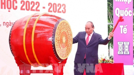 (VOV5) - Chủ tịch nước Nguyễn Xuân Phúc, Thủ tướng Phạm Minh Chính, Thường trực Ban Bí thư Võ Văn Thưởng dự lễ khai giảng năm học mới cùng học sinh cả nước.