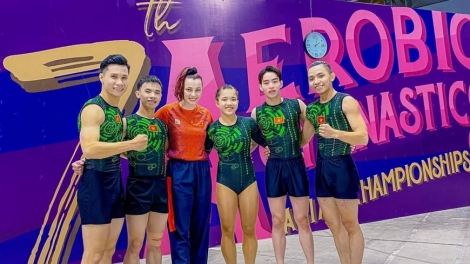 (VOV5) - Kết thúc giải, đội tuyển thể dục Aerobic Việt Nam giành tổng cộng 5 huy chương vàng, 7 huy chương bạc.