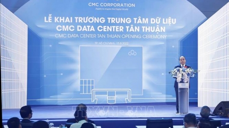 (VOV5) - Chiều 15/8, tại Thành phố Hồ Chí Minh, Chủ tịch nước Nguyễn Xuân Phúc dự và thực hiện nghi thức khai trương Trung tâm dữ liệu CMC Tân Thuận.