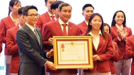 (VOV5) - Thủ tướng đề nghị tiếp tục nghiên cứu, đề xuất chính sách và quan tâm hơn nữa đến các vận động viên, huấn luyện viên về đời sống vật chất, tinh thần, điều kiện luyện tập.