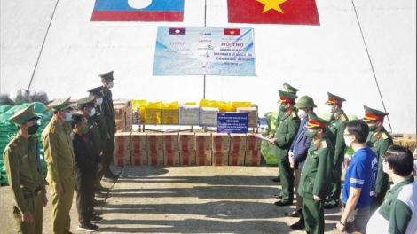 Tặng gạo và nhu yếu phẩm cho nhân dân các bản của Lào