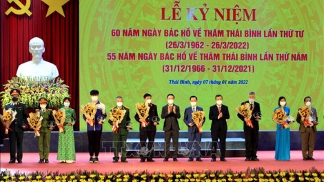 Thường trực Ban Bí thư Võ Văn Thưởng dự lễ kỷ niệm ngày Chủ tịch Hồ Chí Minh về thăm tỉnh Thái Bình
