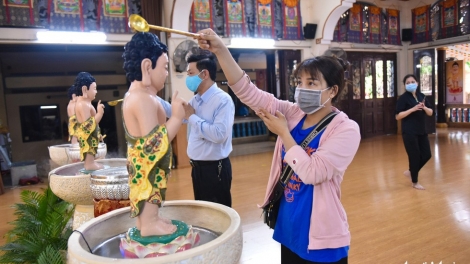 (VOV5) - Đại lễ là sự kiện có ý nghĩa đặc biệt, vừa giúp Phật tử thể hiện tâm thành kính với đức Phật thông qua hoạt động tắm Phật, vừa thể hiện tinh thần từ bi, đoàn kết.