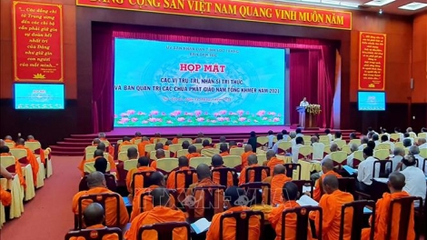 (VOV5) - Hơn 230 đại biểu là các vị trụ trì, nhân sĩ trí thức và Ban quản trị các chùa Phật giáo Nam tông Khmer trên địa bàn tỉnh tham gia buổi họp mặt.