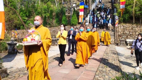 (VOV5) - Sau khi thực hiện nghi thức đóng dấu thiêng Yên Tử tại tháp Tổ, các đại biểu, phật tử dâng hương, cử hành lễ cầu quốc thái dân an.