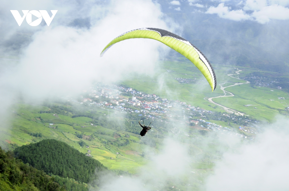 Lần đầu tiên Giải dù lượn đường trường Putaleng mở rộng được tổ chức với cấp quốc gia tại Lai Châu. Ảnh: Khắc Kiên/ VOV |