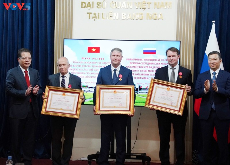 Nhân dịp này, thay mặt Đảng và Nhà nước Việt Nam, Đại sứ Việt Nam tại LB Nga Đặng Minh Khôi và Thiếu tướng Bùi Hải Sơn đã trao tặng Huân chương Lao động Hạng 3 của Nhà nước CHXHCN Việt Nam cho Viện nghiên cứu khoa học dược liệu và tinh dầu Liên bang Nga và 3 cá nhân, Huân chương Hữu nghị cho 6 cá nhân là các cán bộ, chuyên gia Nga đã có thành tích xuất sắc trong 30 năm hợp tác trực tiếp thực hiện nhiệm vụ giữ gìn lâu dài, bảo vệ tuyệt đối an toàn thi hài Chủ tịch Hồ Chí Minh.