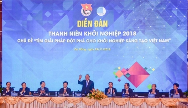 Thủ tướng Nguyễn Xuân Phúc phát biểu tại Diễn đàn Thanh niên Khởi nghiệp năm 2018 diễn ra tại Đà Nẵng. Nguồn:doanthanhnien.vn. |