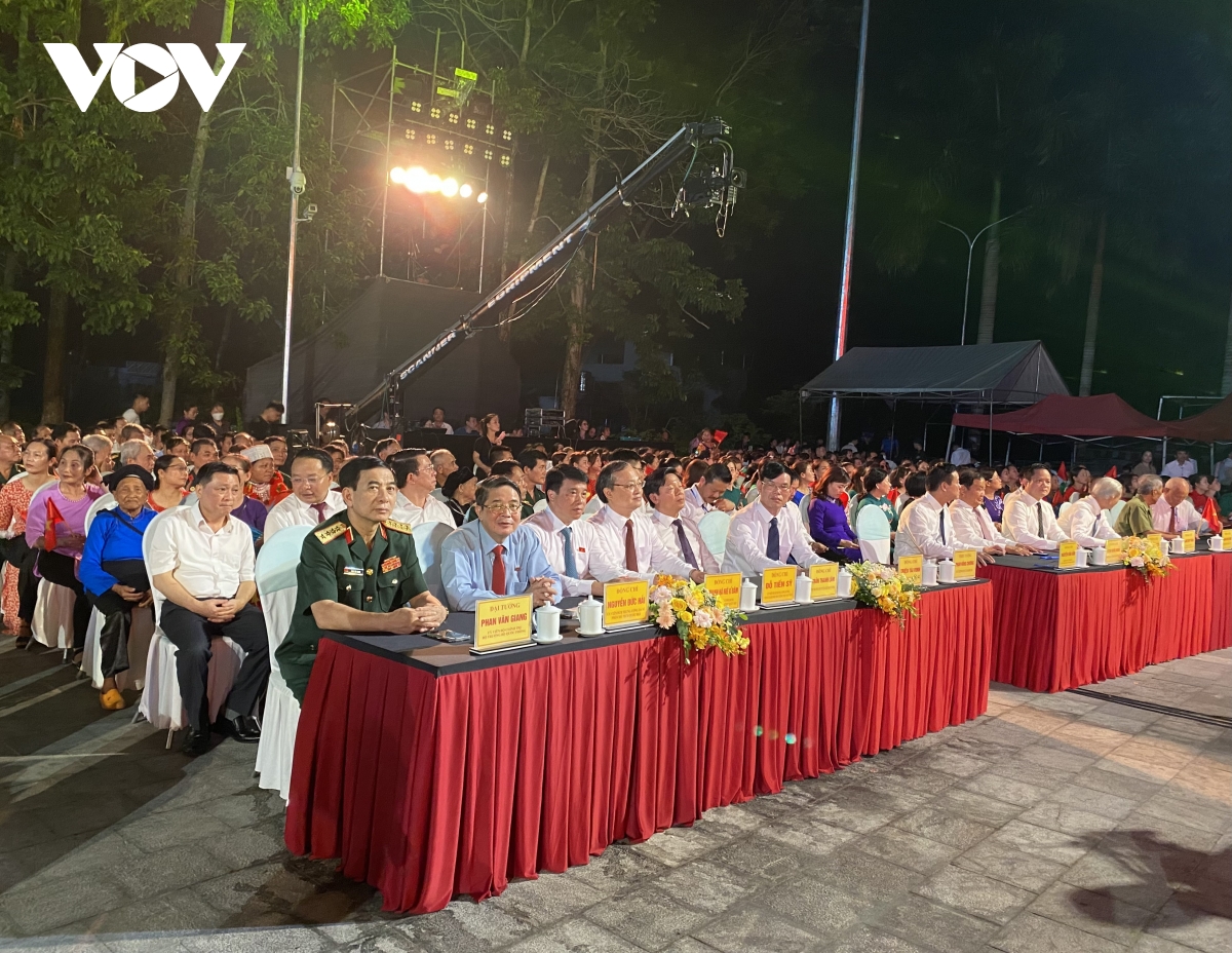 Lãnh đạo Đảng, Nhà nước tham dự cầu truyền hình trực tiếp Kỷ niệm 75 năm Ngày Thương binh – Liệt sỹ - Khúc tráng ca hòa bình tại điểm cầu Hà Giang tối 27/7. Ảnh: VOV |
