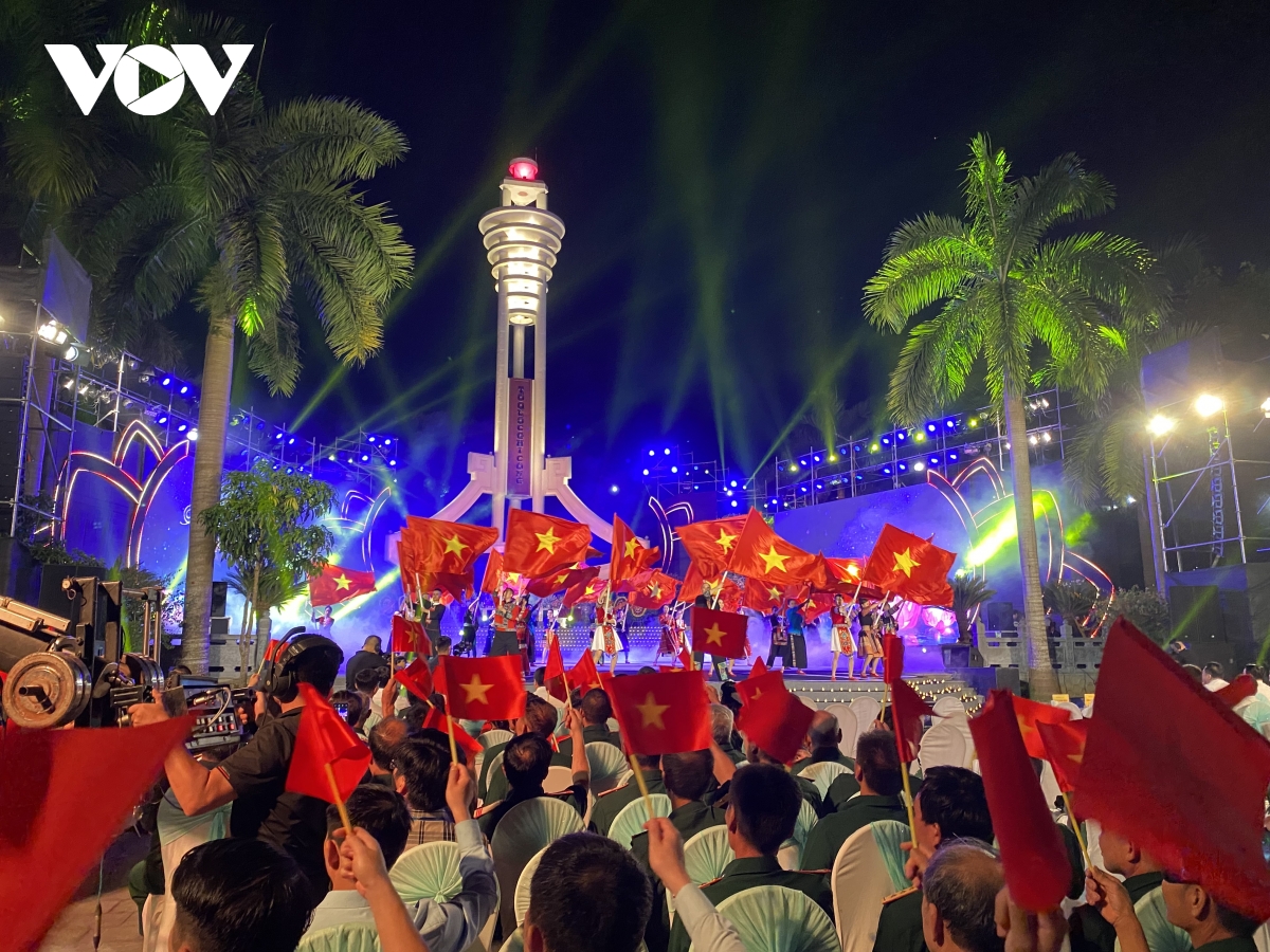 Chương trình “Khúc tráng ca hòa bình” từ điểm cầu quần thể tượng đài Bà mẹ Việt Nam anh hùng tại khu núi Cấm, thôn Phú Thạnh, xã Tam Phú, thành phố Tam Kỳ, tỉnh Quảng Nam. Ảnh: VOV |