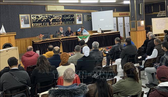 Quang cảnh buổi làm việc với các trọng tài về công tác tổ chức giải tại thủ đô Algiers. Ảnh: Tấn Đạt/ TTXVN |