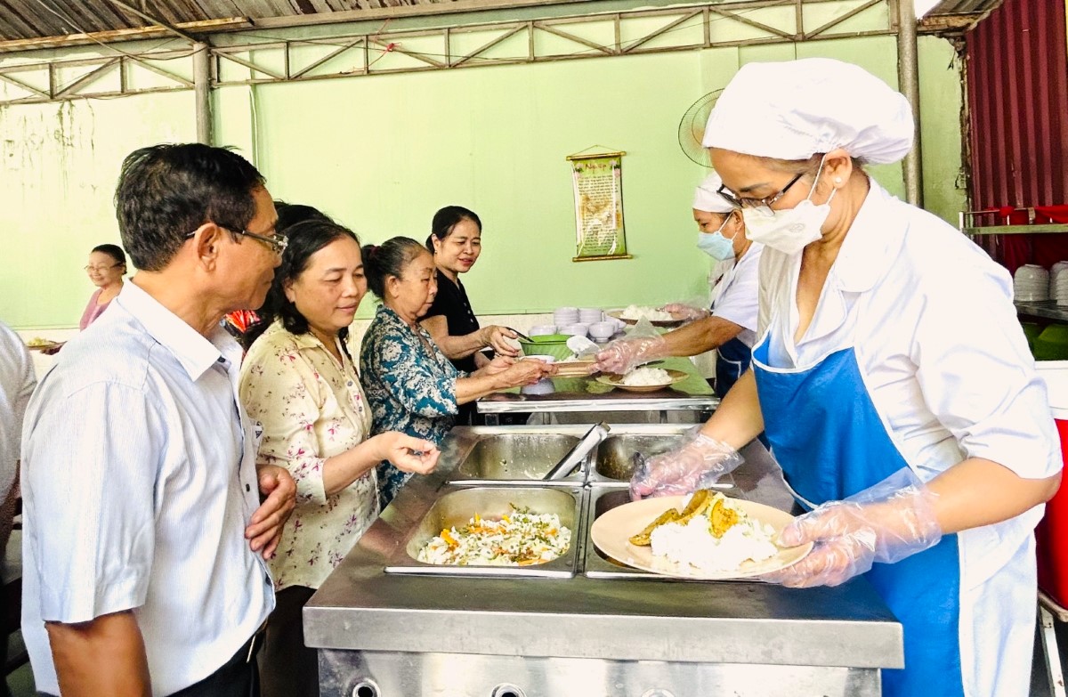 Đúng 10 giờ sáng, từ thứ 2 đến thứ 6 hằng tuần, những khay thức ăn nóng hổi, ngon lành đã được bày biện, sẵn sàng đón những thực khách đến với “Bữa ăn yêu thương”. Mỗi bữa ăn luôn có đủ các món kho, xào, canh được thay đổi hằng ngày để người ăn thấy ngon miệng. Càng về trưa, những dãy bàn ghế càng đông người đến ăn. Đến đây, mọi người cảm nhận được sự thoải mái bởi không gian thoáng mát, những dãy bàn ghế sạch sẽ, thoải mái.