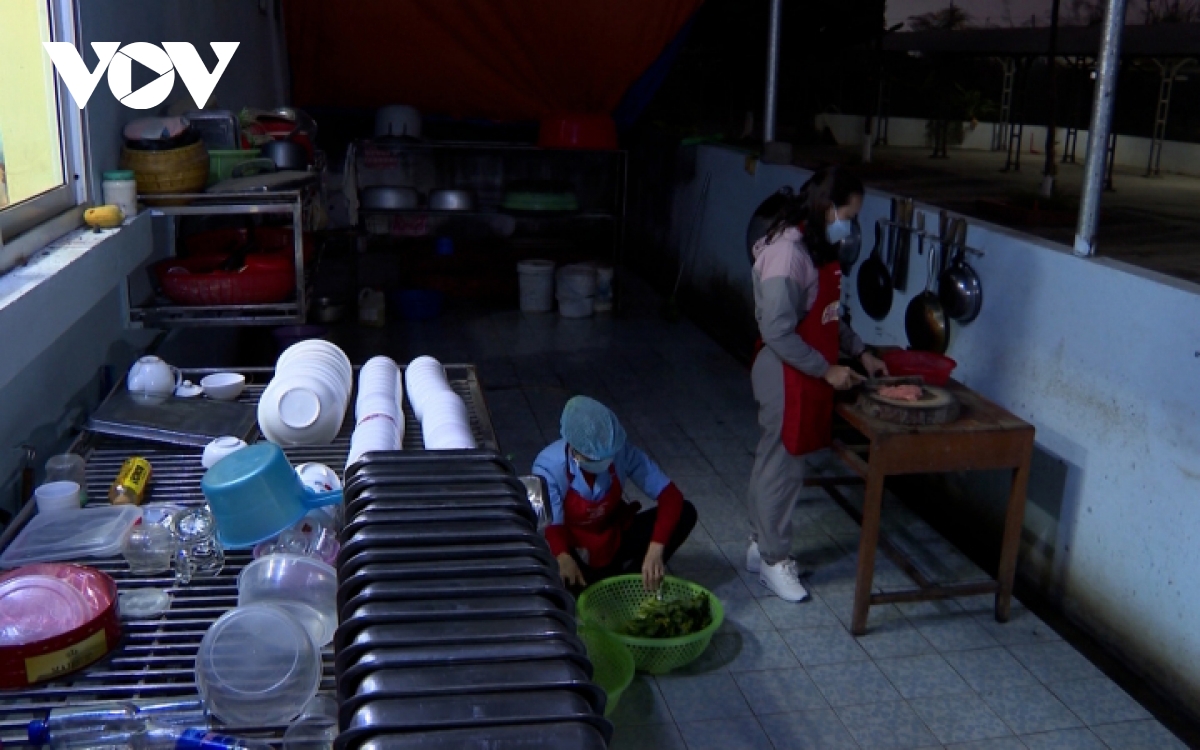 Bếp ăn chuẩn bị nấu cháo phát cho bệnh nhân nghèo vào mỗi sáng thứ 7. |