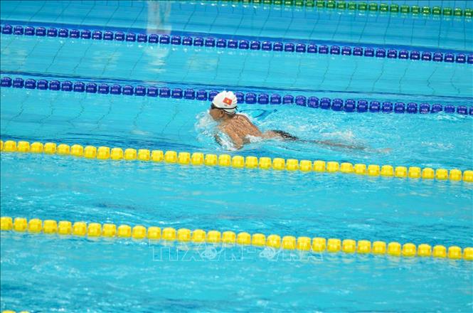 Vận động viên Lê Tiến Đạt trên đường bơi. Ảnh: TTXVN |