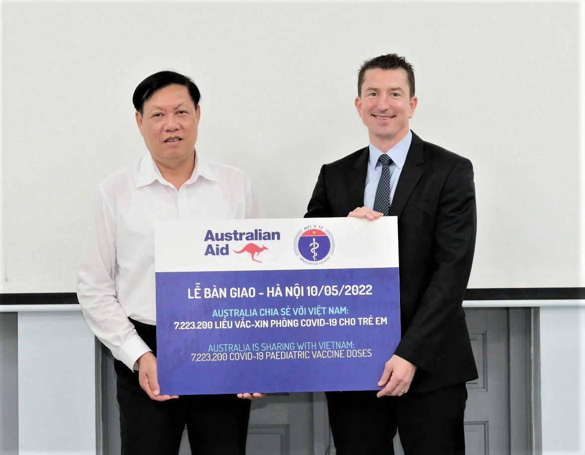 Ngày 10/5, tại Hà Nội, Phó Đại sứ Australia tại Việt Nam, Mark Tattersall cùng Thứ trưởng Bộ Y tế Đỗ Xuân Tuyên tham dự lễ bàn giao chính thức hơn 7,2 triệu liều vắc-xin ngừa COVID-19 cho trẻ em tại Viện Vệ sinh Dịch tễ Trung ương.