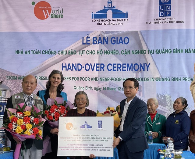 Đánh giá cao hỗ trợ thiết thực của World Share, bà Ramla Khalidi, Trưởng đại diện thường trú UNDP tại Việt Nam, nhấn mạnh: Theo một nghiên cứu về nhu cầu nhà ở có khả năng chống chịu bão lụt mà UNDP thực hiện với Bộ Xây dựng, hơn 110.000 hộ vẫn sống trong tình trạng không có nhà ở an toàn tại 28 tỉnh ven biển, trong đó có hơn 25.000 hộ ở các huyện ven biển, và hơn 1000 hộ ở sáu huyện ven biển của tỉnh Quảng Bình. Hỗ trợ thiết thực giúp tăng cường khả năng chống chịu của các hộ nghèo và cận nghèo tại địa phương trước các cú sốc biến đổi khí hậu.”