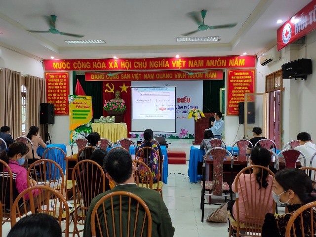 Tập huấn về sở hữu trí tuệ cho các hộ gia đình sản xuất bánh tẻ Phú Nhi. |