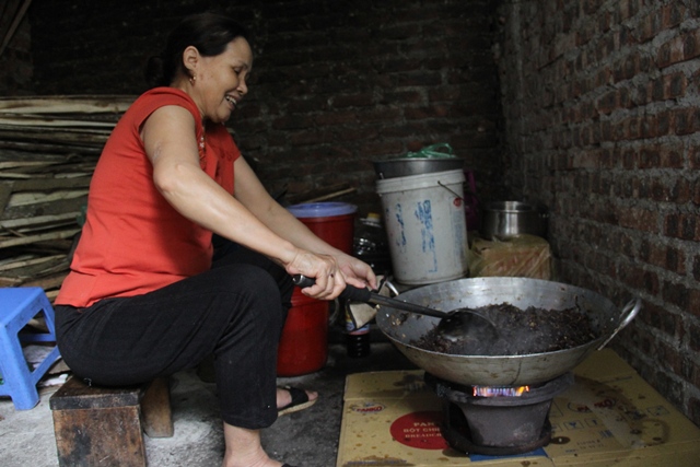 Sản xuất bánh tẻ tại gia đình bà Phạm Thị Bình, phường Phú Thịnh, thị xã Sơn Tây. |