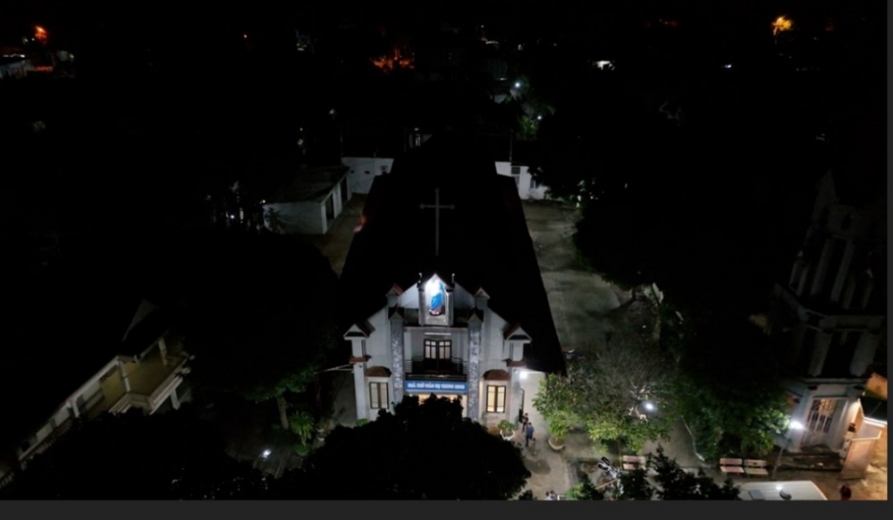 Nhà thờ Giáo họ Trung Minh ở thành phố Hòa Bình nhìn từ trên cao. Ảnh: Ngọc Anh |
