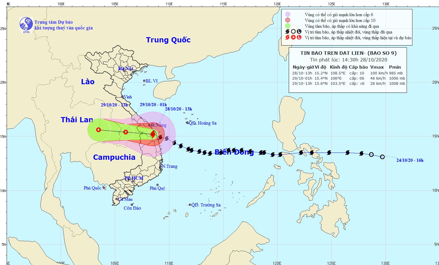Bão số 9 có tên gọi là Molave, sau hơn 2 giờ quần thảo tại các tỉnh miền Trung, đã để lại hậu quả nặng nề khiến hàng nghìn ngôi nhà tốc mái, cây xanh gẫy đổ và úng ngập cục bộ tại nhiều địa phương. - Ảnh: Trung tâm Dự báo khí tượng thủy văn quốc gia. |