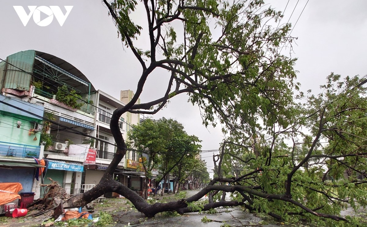 Nhiều cây xanh bị bão số 9 quật đổ trên đường phố Đà Nẵng. - Ảnh: VOV |