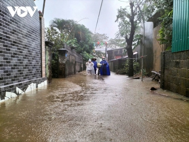 Mưa lớn gây ngập một số tuyến đường ở các xã ven sông huyện Lệ Thủy, tỉnh Quảng Bình. Ảnh: VOV |
