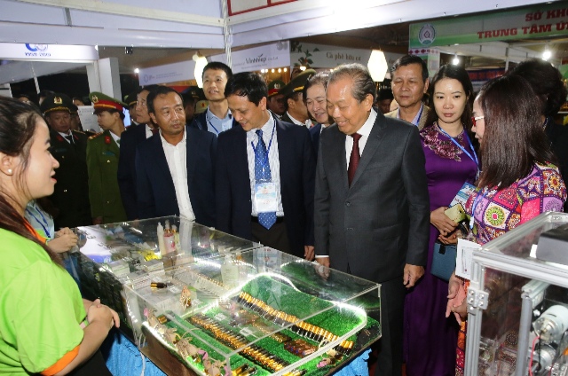 Phó Thủ tướng Thưòng trực Trương Hòa Bình tham quan sản phẩm của các nhà khoa học tại Techdemo 2019 Gia Lai - Ảnh: VGP/Mạnh Hùng |