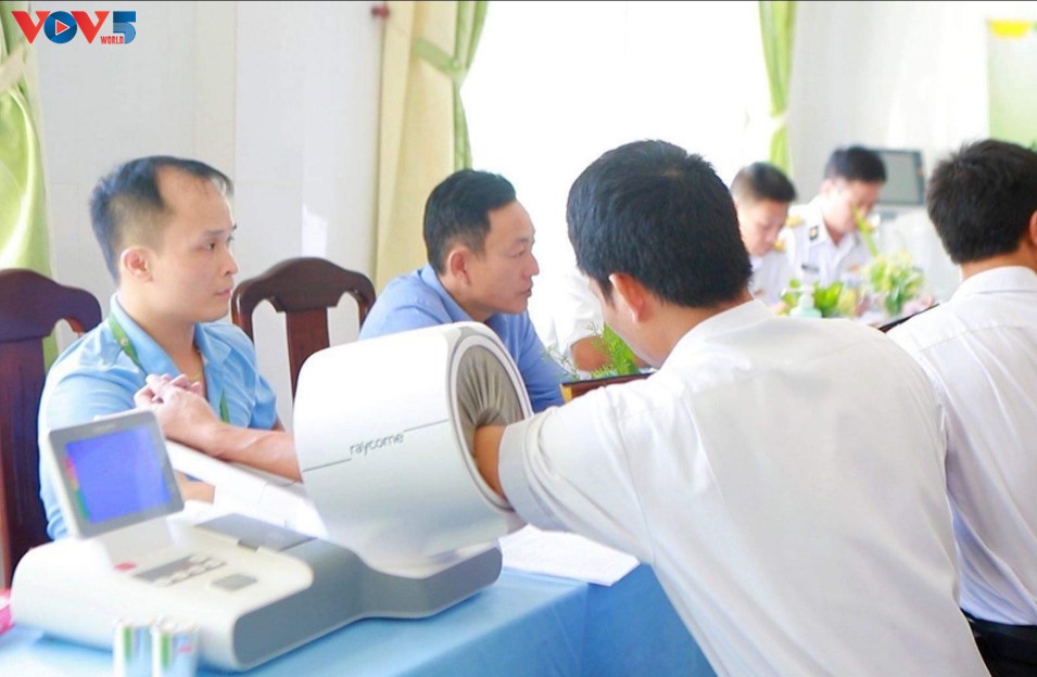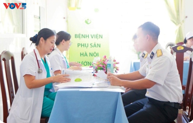 Thăm khám cho các cán bộ chiến sỹ của lực lượng Hải quân. Ảnh: VOV5 |