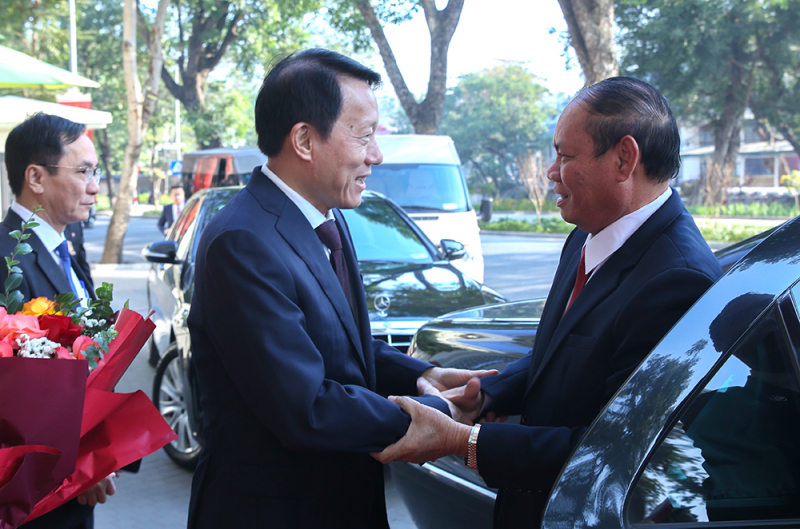 Bộ trưởng Lương Tam Quang chào mừng Phó Thủ tướng, Bộ trưởng Vilay Lakhamphong sang thăm, làm việc tại Việt Nam. Ảnh: cand.com.vn |