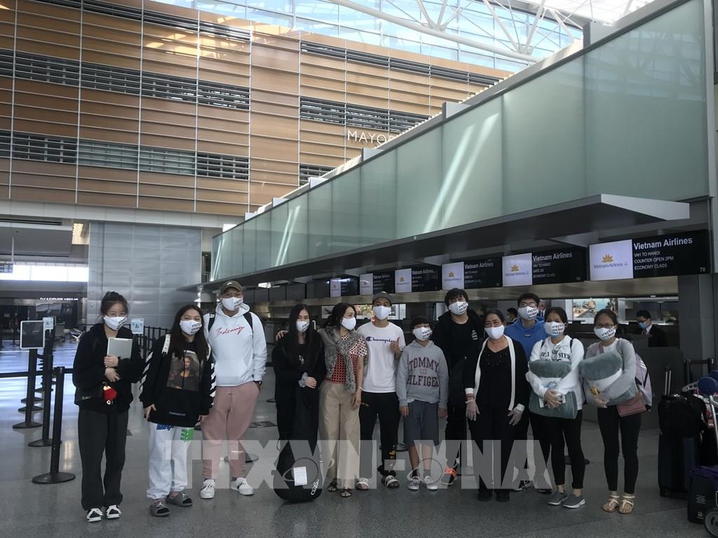 Một số du học sinh Việt Nam tại Mỹ được hỗ trợ làm thủ tục về nước hồi đầu tháng 6/2020. Ảnh: TTXVN |